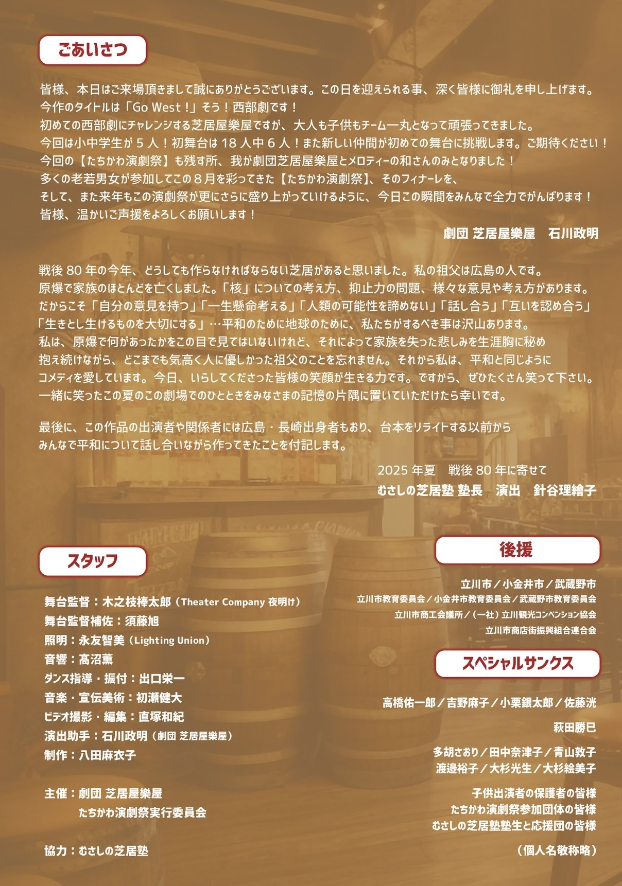 主催:劇団 芝居屋樂屋/たちかわ演劇祭実⾏委員会