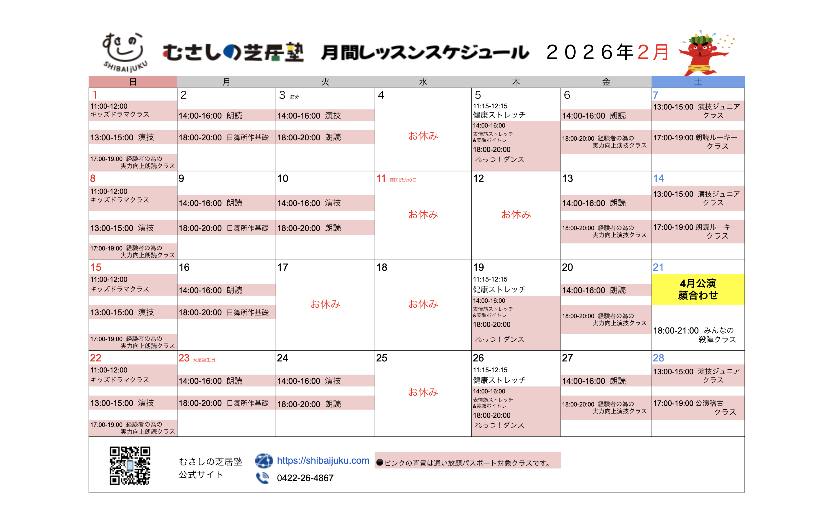 講座スケジュール2026.01.222月からのレッスンスケジュール変更します!